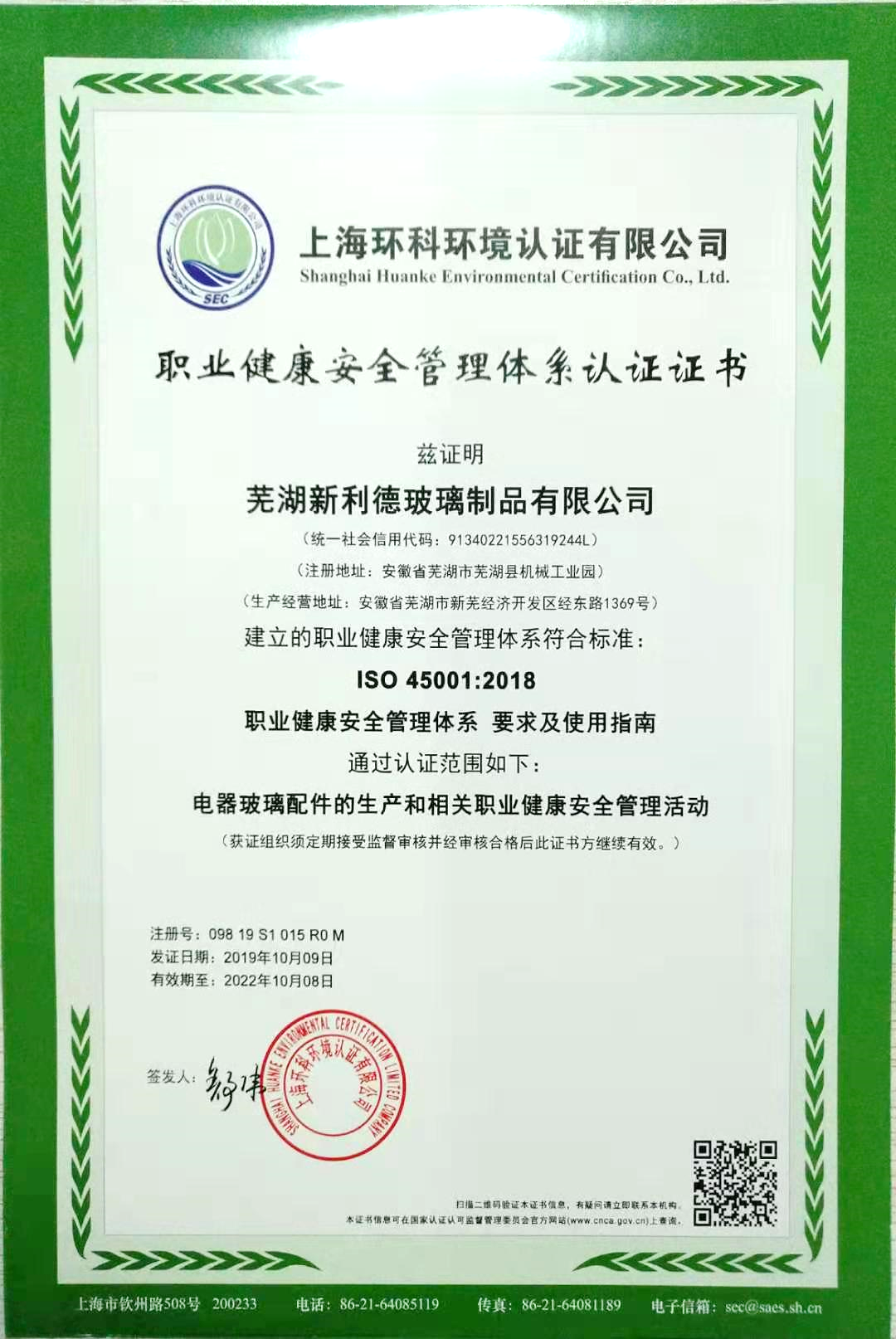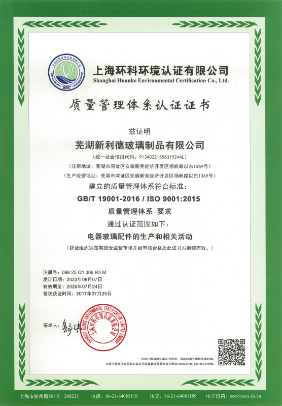 资质荣誉-走进新利德-芜湖新利德玻璃制品有限公司